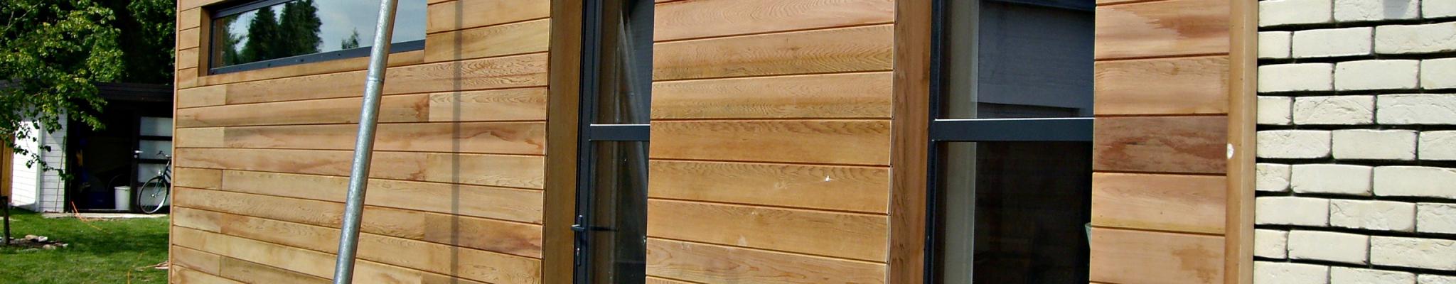 Muren of gevels met hout bekleden behoort ook tot onze specialiteiten. Een muur bekleden met hout om meer dimensie te creeëren, oude gevelbekleding te bestoppen of gewoon als decoratie, aan u de keuze. Meestal wordt er gewerkt met harde houtsoorten zoals bijvoorbeeld padouk en cederhout, maar andere houtsoorten zijn natuurlijk ook mogelijk. Voor moderne gevelbekleding werken wij ook met hardie sidings.