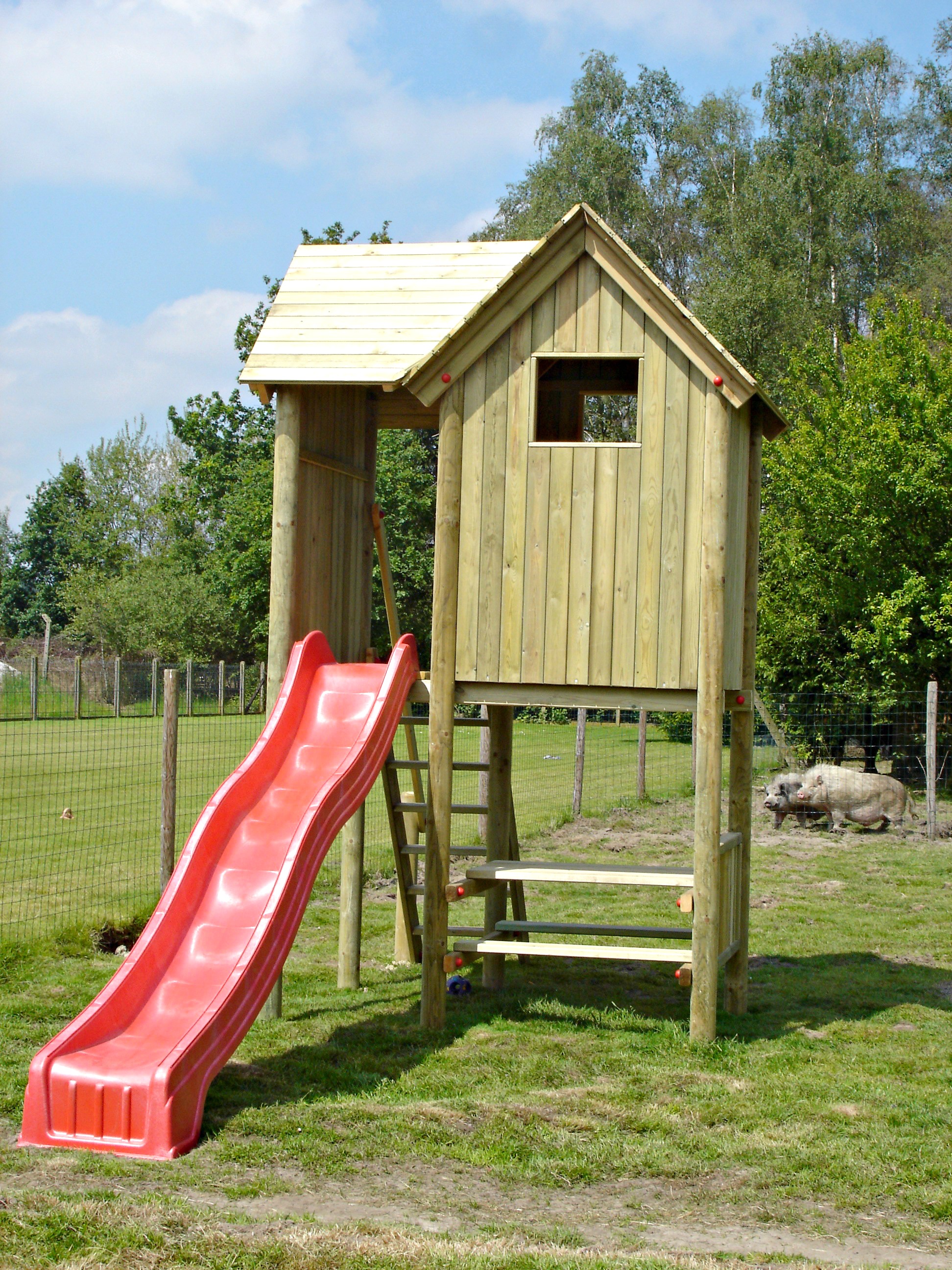 Voor de speeltuigen werken wij vooral met geïmpregneerd hout, maar andere houtsoorten zijn natuurlijk ook mogelijk. De glijbanen zijn vervaardigd uit kunststof. Kindvriendelijkheid, duurzaamheid en veiligheid staan bij al onze ontwerpen centraal.
