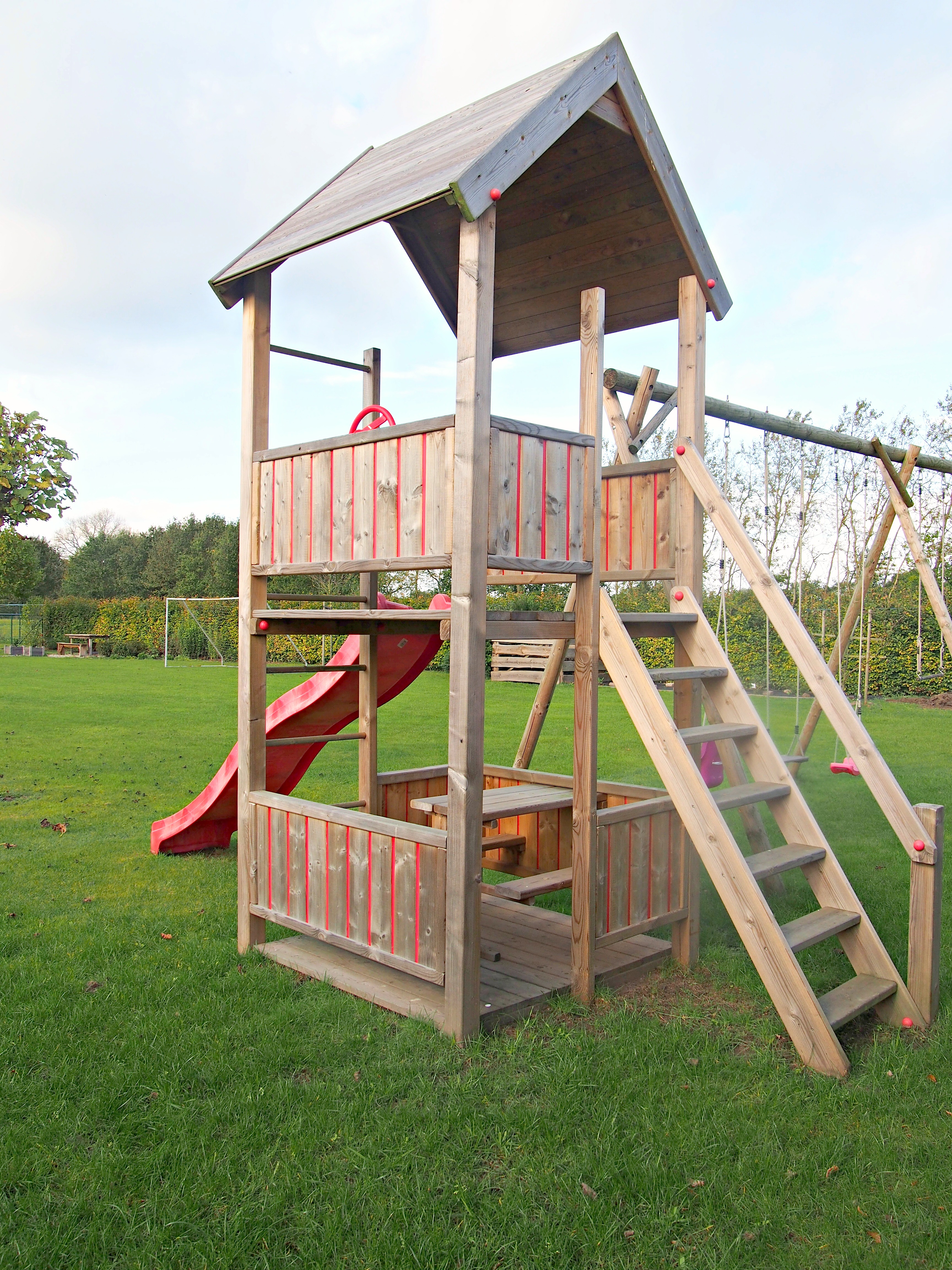 Al onze speeltuigen worden vervaardigd op basis van jarenlange ervaring en volgens uw wensen. Bovenop ons uitgebreid assortiment zijn er tal van extra's en aanbouwmogelijkheden.