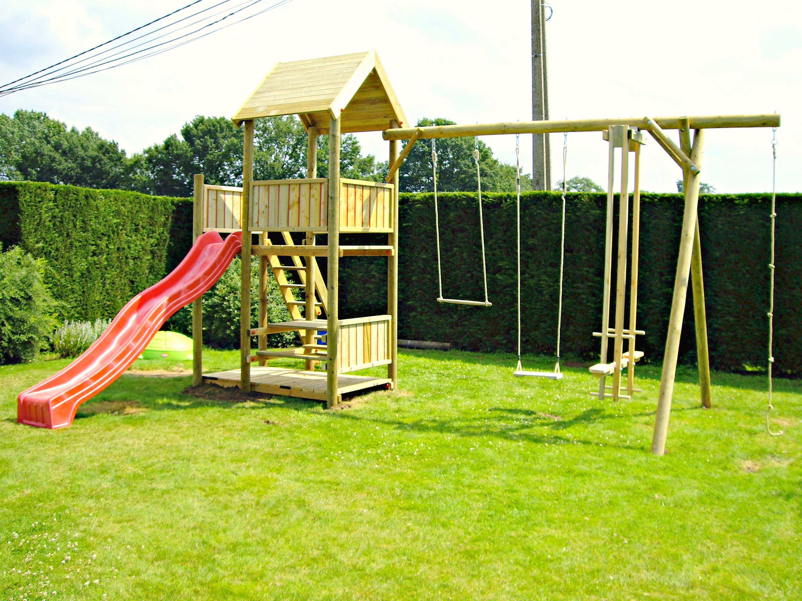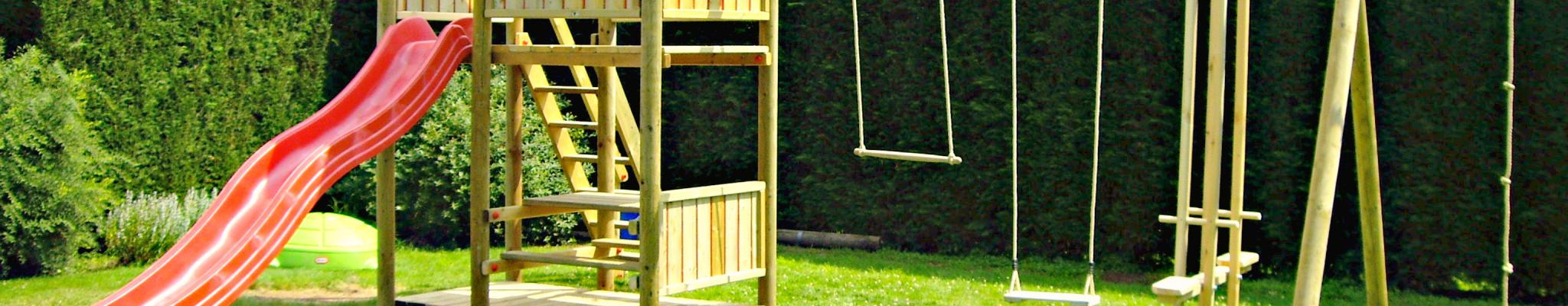 Speeltuigen, houten schommels en speeltorens